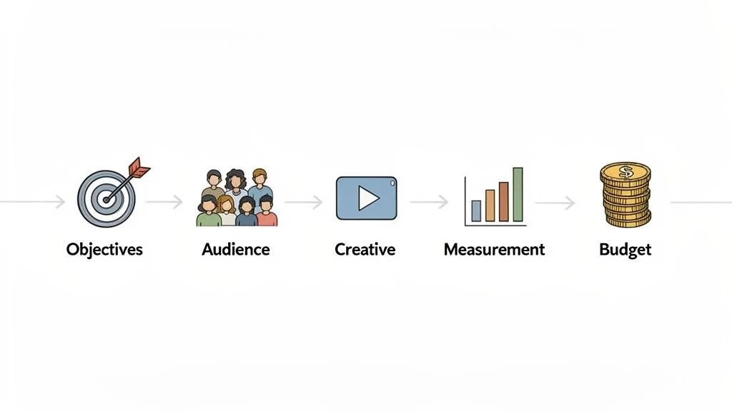 This is your foundation. You need to set crystal-clear objectives around these numbers from day one. An e-commerce brand, for instance, might be aiming for a 4:1 ROAS to stay healthy, while a service business might focus on hitting a target CAC that keeps their margins intact.