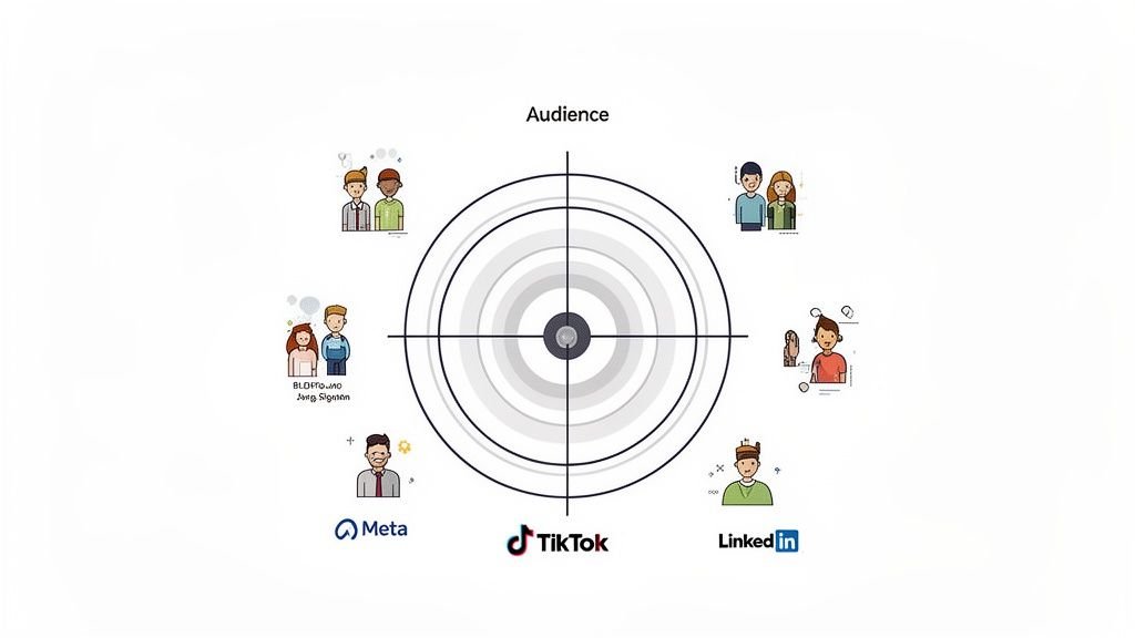 Let's be blunt: even the most jaw-dropping creative will fall flat if it’s shown to the wrong people. This is the stage where a paid social strategy is truly made or broken. Before you spend a single pound on ads, you need absolute clarity on who your customer is and where they hang out online.